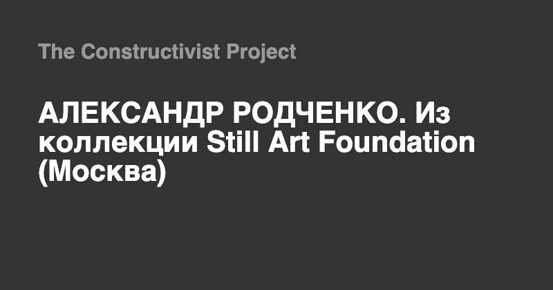 Центр фотографии имени братьев Люмьер представляет выставку работ выдающегося художника русского авангарда Александра Родченко из коллекции фонда Still Art, созданного Еленой и Михаилом Карисаловыми. В экспозицию войдут работы Родченко разных лет, начиная с первых фотографических опытов 1920-х до конца 1930-х годов. На выставке будут представлены знаменитые портреты друзей Родченко – художников, архитекторов, поэтов, писателей, кинорежиссеров, сотрудников журналов «ЛЕФ» и «Новый ЛЕФ», среди которых узнаваемый портрет Лили Брик, который стал основой для плаката Ленгиза, несколько фотографий Владимира Маяковского из первой фотосессии в мастерской Родченко на Мясницкой (1924) и знаменитая фотография Осипа Брика, где вместо одной из линз очков вмонтировано название журнала «ЛЕФ». В экспозицию также войдут портреты семьи: матери фотографа, его жены Варвары Степановой и дочери Варвары Родченко, архитектурные съемки и фоторепортажи: легендарные «Балконы» (1925), «Пожарная лестница» (1925), «Лестница» (1929), а также «Пионер - трубач» (1930) и «Пионерка» (1930).