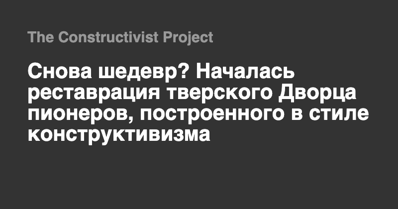 Старый Дворец пионеров на улице Баррикадной в Твери — объект культурного наследия регионального значения — называют «уникальным», «манифестом конструктивизма», «забытым шедевром». Все это верно, хотя «забывчивость» местной власти была вызвана, главным образом, нехваткой средств в бюджете на восстановление здания. Наконец нашлись деньги на разработку проектно-сметной документации, а в этом году реставрационный процесс начал набирать ход.